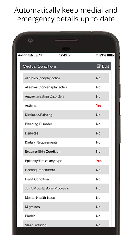 Organisations provide authorised carers (e.g. teacher, coaches, supervisors, etc) instant access to care profiles on mobile devices in an emergency...so they know who to call, what to do, or what to tell an ambulance paramedic.