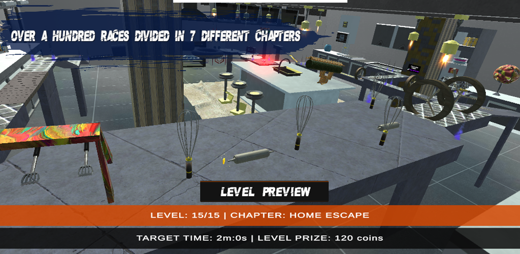 Nyalakan mesin dan balapanlah melalui lintasan mobil mega ramp, rintangan gila, dan tantangan time trial! Kendarai mobil-mobil mungil di tempat-tempat luas: lompat di dapur, terbang melintasi angkasa, balapan di garasi, dan terbang tinggi di angkasa.