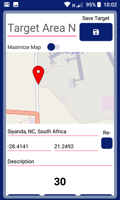 * Buat area target baru / pilih dari lokasi target yang disimpan