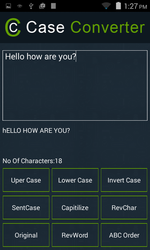 Meluncurkan Mobile Kasus Converter App. Satu dapat mengkonversi teks menggunakan perangkat tangan.