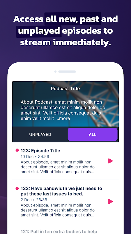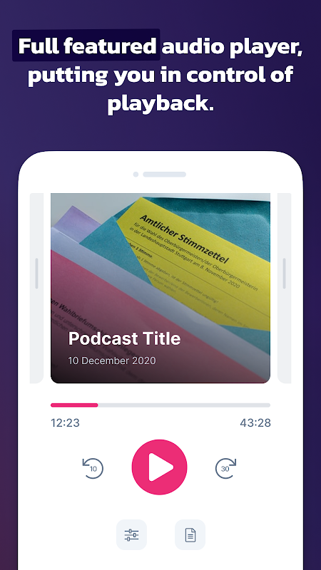 Selamatkan diri Anda dari kesulitan mencoba mengelola beberapa umpan RSS pribadi, dan pengalaman mendengarkan pihak ketiga yang kikuk, dan dapatkan semua konten podcast pribadi Anda dalam satu aplikasi yang mudah diakses.