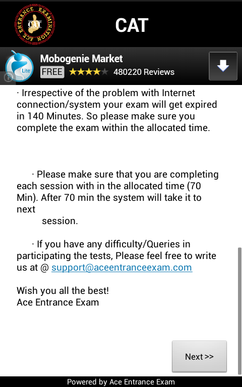 Now you can also bell the CAT with ACE Entrance Exam. Our simulated CAT modeled mock exams, help you prepare in real time for the real test. ACE's CAT Mock Exams cover all possible question and patterns spread across comprehensive gamut of Quantitative Ability, Data Interpretation, Verbal Ability & Logical Reasoning. Based on the actual online testing model of CAT, ACE's mock tests help you to be well rehearsed and equipped for the D Day.