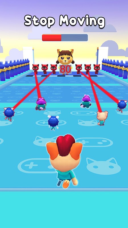Sebuah permainan mini dengan aturan yang sederhana namun sangat menarik yang mirip dengan dunia Cumi-cumi. Anda hanya diperbolehkan bergerak saat lampu hijau menyala dan harus diam saat lampu merah muncul. Berusahalah sebaik mungkin untuk menjauh dari pandangan boneka kucing, jika tidak, Anda akan tersingkir. Selain itu, jangan lupa untuk mengikuti sinyal lampu dan tindakan pemain lain di arena saat bergerak.