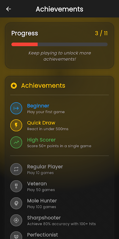 Setiap pukulan dan pukulan yang mengenai sasaran dilacak, dan Anda dapat memantau kinerja Anda melalui statistik terperinci yang menunjukkan akurasi, kecepatan reaksi, dan riwayat skor Anda. Buka pencapaian saat Anda maju, buktikan keterampilan Anda di level yang lebih sulit.