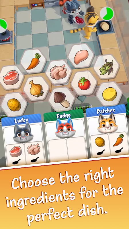 Kendalikan brigade koki kucing Anda untuk memasak hidangan sebanyak mungkin sebelum kebaktian berakhir.