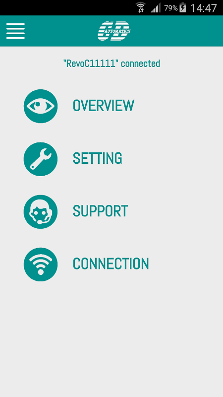 Dengan AUTOMATION - CONNECT CD titik ke titik koneksi yang mungkin melalui WiFi antara perangkat seluler atau tablet dan regulator kekuatan kita, unit SCR Thyristor atau AUTOMATION CD drive lain, di mana opsi Wifi hadir.