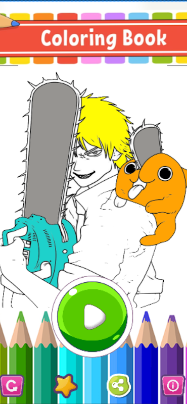 Di dalam aplikasi ini terdapat halaman mewarnai yang indah dari Chainsaw Man bahkan Iblis, yaitu: 🎨