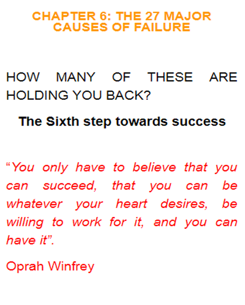 Chapter 6 # The Twenty- Seven Major Causes Of Failure
