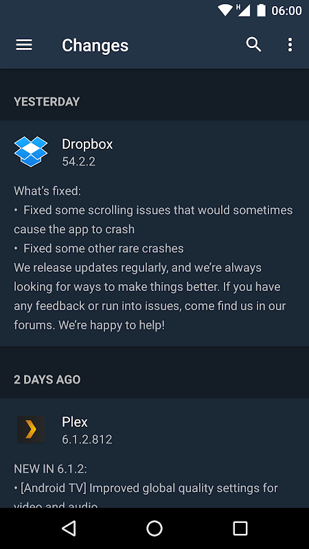 Perubahan memungkinkan Anda melacak pembaruan aplikasi dan changelogs mereka.