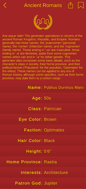 - Jangan berhenti pada nama. Selami usia, ulang tahun, warna rambut dan mata, tinggi badan, kecerdasan, kepribadian, dan hubungan—semuanya dibuat dengan satu ketukan. Karakter Anda akan hidup dengan kedalaman dan bakat!