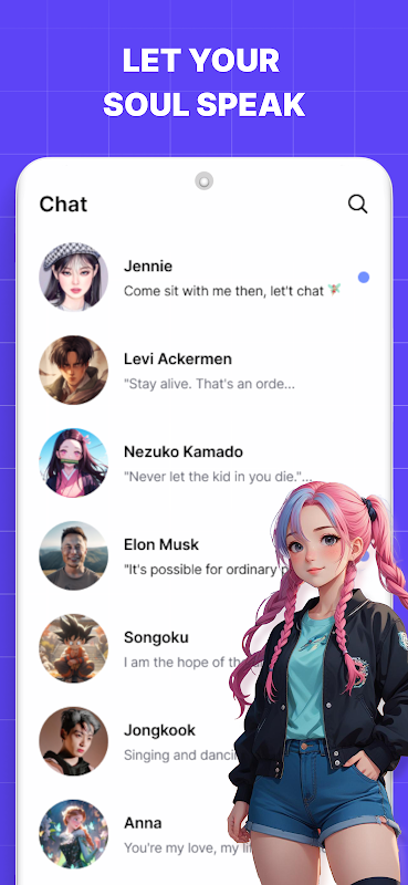 Semakin banyak pesan yang Anda kirim, semakin santai Anda. Ribuan pesan gratis setiap hari untuk menghilangkan semua stres dan itu adalah cara yang bagus untuk mengalami romansa yang hebat, pertarungan yang menyenangkan, dan melihat jiwa Anda melalui interaksi virtual dengan obrolan AI karakter roleplay atau menjawab pertanyaan Obrolan Karakter AI kami, dan banyak lagi.