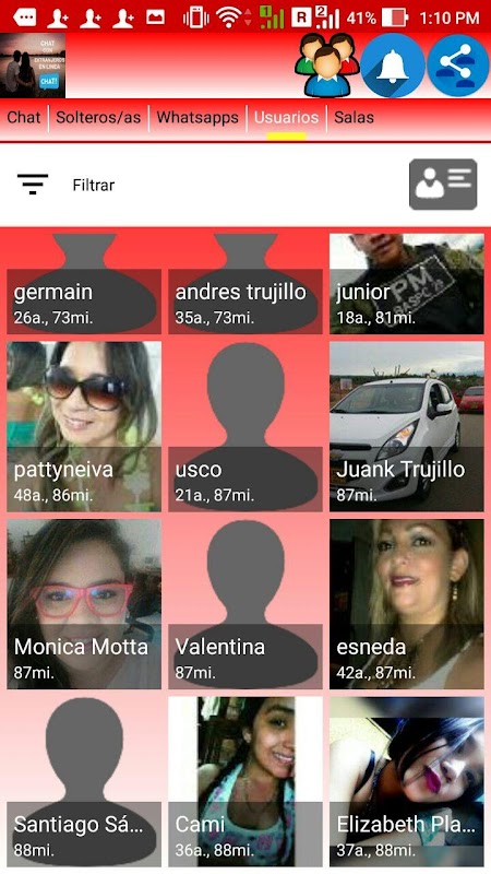 Usuarios de distintos países latinos tienen su espacio y se conectan a nuestra aplicación de chat gratis para conocer gente, hacer nuevas amistades, tener contactos y chatear sobre diversos temas, en Chat con extranjeros en línea cuentas con la posibilidad de que cada usuario pueda crear su perfil y estar chateando con las demás personas de nuestra comunidad mediante nuestras salas de chat.