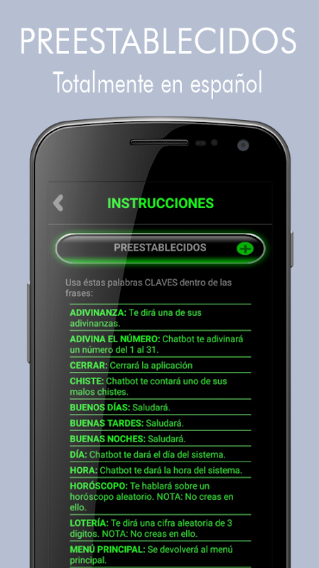 Buat teman dan keluarga Anda percaya bahwa Chatbot tahu segalanya tentang mereka. Sebuah aplikasi menyenangkan yang merespon sesuai dengan 50 Perintah Suara yang dapat Anda edit dengan lelucon. Aplikasi ini juga dilengkapi dengan perintah prasetel lainnya.