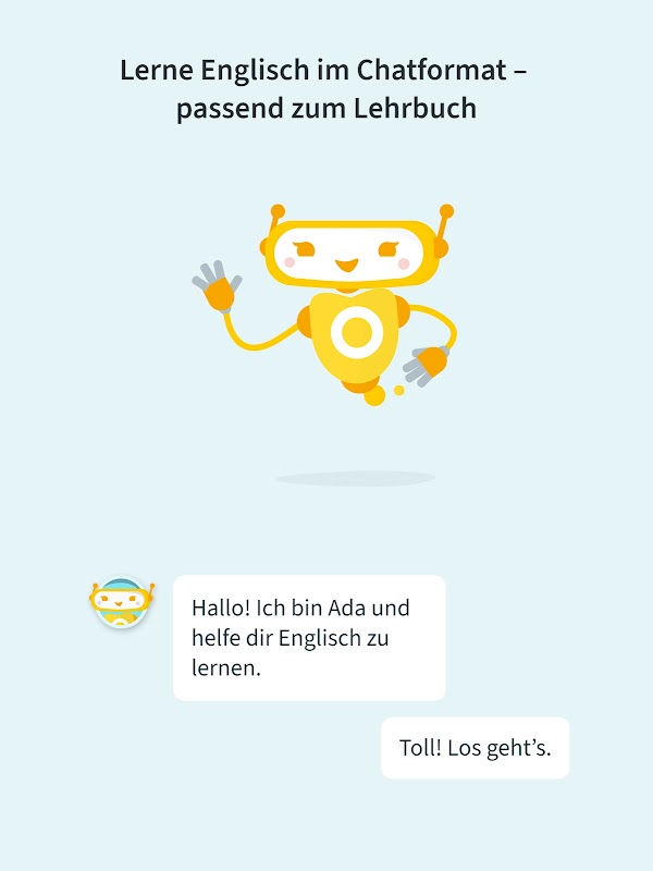 Di ChatClass Anda dapat belajar bahasa Inggris dengan aman dan tanpa rasa takut dengan berbicara dengan mitra obrolan digital Anda, Ada. ChatClass berisi banyak tugas untuk pembelajaran level B1, B2 dan C1 serta buku teks bahasa Inggris Cornelsen (kelas 5-13). Ini termasuk tugas berbicara di mana Anda dapat berlatih berbicara dengan bebas dan pengucapan yang benar. Ada juga tugas mendengarkan, tugas membaca dan tugas tata bahasa serta beragam kuis kosakata, yang semuanya dapat Anda selesaikan secara mandiri atau sebagai bagian dari pekerjaan rumah.