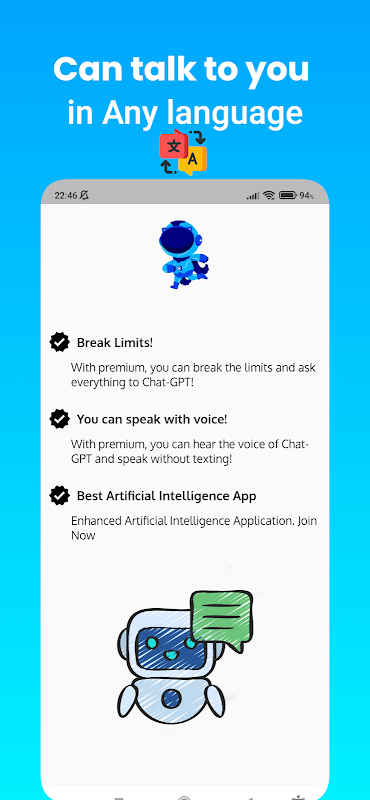 Dengan aplikasi ini, Anda dapat mengobrol dengan bot cerdas kami dan mendapatkan jawaban instan yang mengesankan untuk semua pertanyaan Anda. Apakah Anda memerlukan bantuan untuk masalah tertentu, ingin mempelajari lebih lanjut tentang topik tertentu, atau hanya ingin bercakap-cakap, chatbot kami siap membantu Anda.