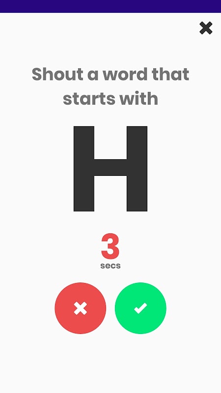 If a player shouts a valid word, then they tap the green button to get awarded a point. If not, then they tap the red button to pass gameplay onto the next player.