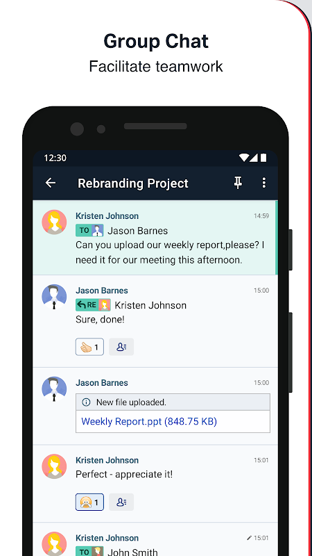 Berkomunikasi dalam perusahaan lebih cepat daripada melalui email dan meningkatkan produktivitas.