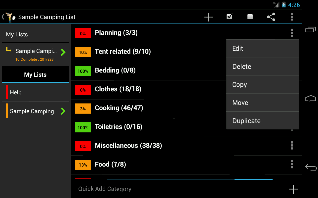This app is a simple checklist for your everyday needs. Very simple and intuitive to use.