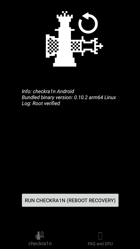 The official release of checkra1n for Linux arm64 is able to be run on many modern Android Phones and is a great way to boot back into a jailbroken state. This application is a simple way for any rooted android device to run the commands required to boot into TWRP Custom Recovery and execute the checkra1n binary.