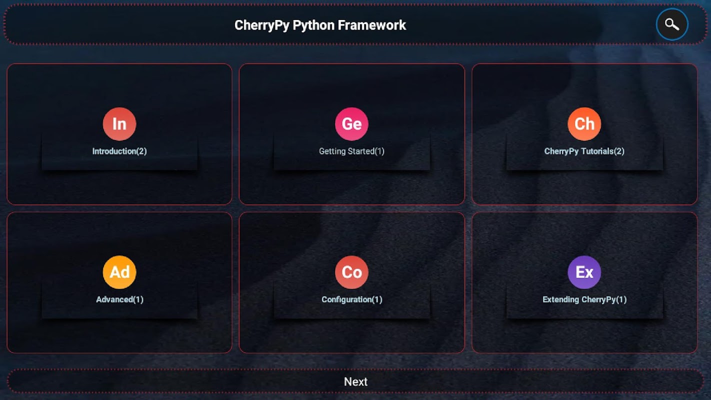 Aplikasi ini memungkinkan Anda mempelajari CherryPy dari awal hingga akhir, offline gratis. Anda juga dapat mengaktifkan edisi lengkap untuk dapat mengkompilasi kode python juga di dalam aplikasi Anda, serta mengakses fitur lainnya.