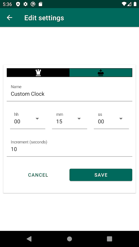 Jam ini memungkinkan Anda mengonfigurasi banyak jenis jam catur:
