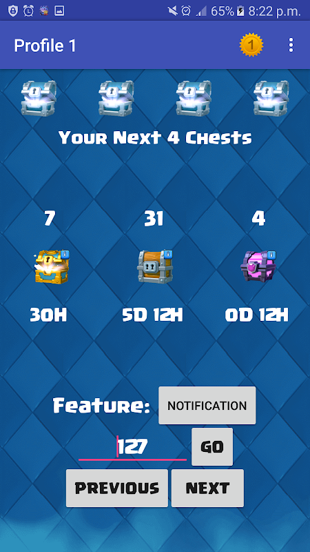 1) Notification Status Bar - Chest Tracking will come in the form of notification panel. Just pull down the notification panel and you can track your chests from there.