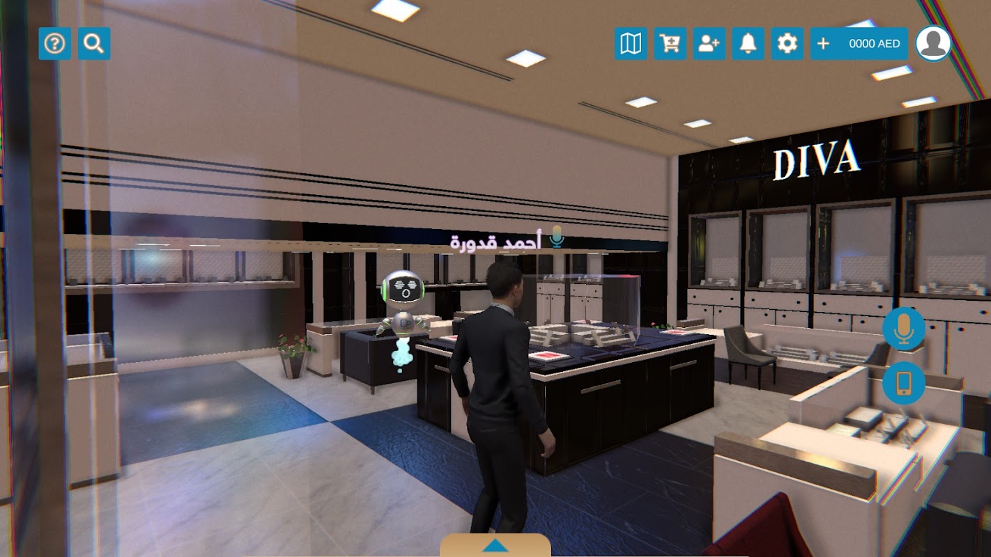 There is a robot in the game that walks along with the customer, talks to him, helps him navigate the game, and guides him to the offers and products which exist.