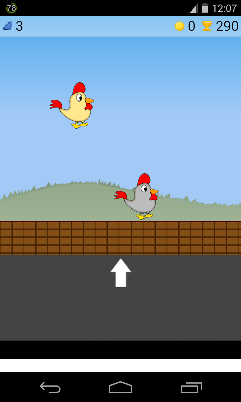 Di game kedua Anda melompat ketika Anda melihat tiang atau ayam.
