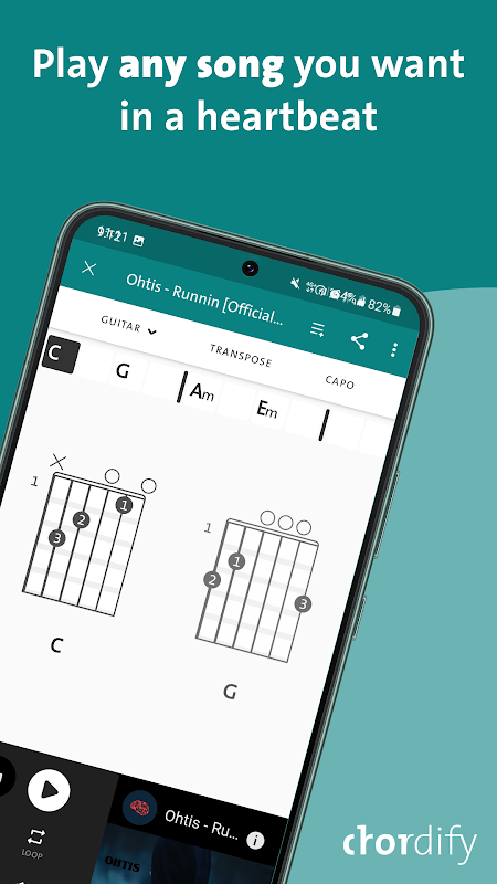 Unduh Chordify dan dapatkan akses instan ke akord dan diagram akord untuk gitar, piano, ukulele, dan mandolin.