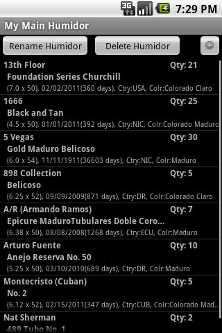Anda juga dapat melacak beberapa pelembab dan inventaris bersama dengan mencicipi catatan, jumlah, usia, dan harga. Aplikasi ini akan menyinkronkan pelembab virtual Anda dengan situs web Cigar Geeks juga. Anda dapat mempertahankan pelembap di aplikasi atau situs web dan menyinkronkan keduanya.