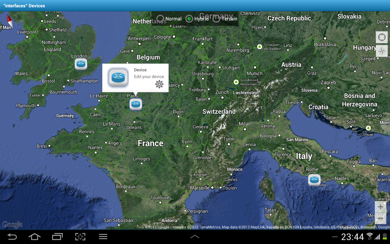 From the created list of Networks the user can access a defined network to generate a Map where they can apply a long touch on the screen on the location of the Router device to see a Cisco router icon followed by a short click on the device icon to get the popup bubble.