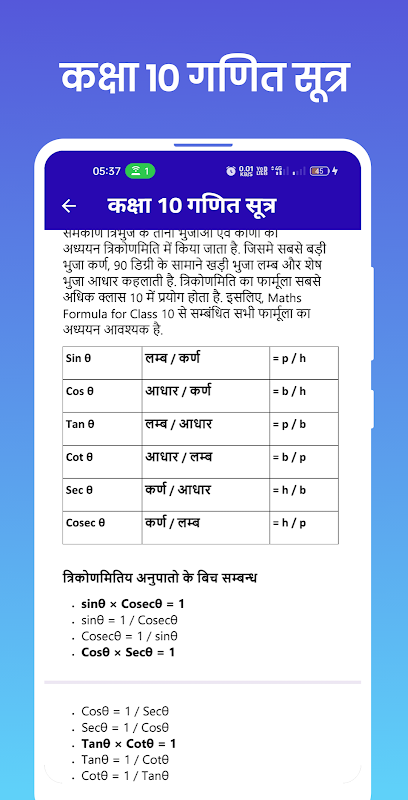 Versi lama Class 10 Math Formula Hindi