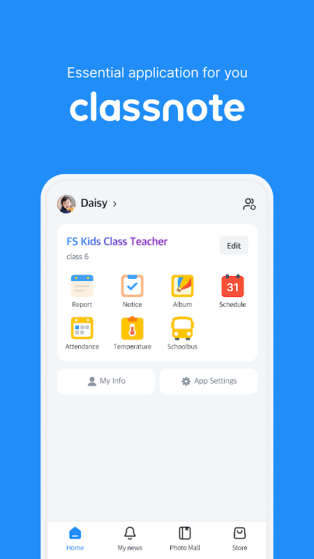 - Semua dalam satu di Catatan Kelas - situs web institut, mengelola laporan harian, menyampaikan pemberitahuan, dan buletin.