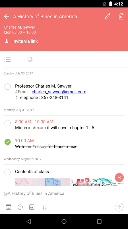 - Mudah menambahkan tanggal, gambar, hashtag (#hashtag) ke catatan Anda menggunakan kode sederhana (#, @) & mode pelengkapan otomatis.
