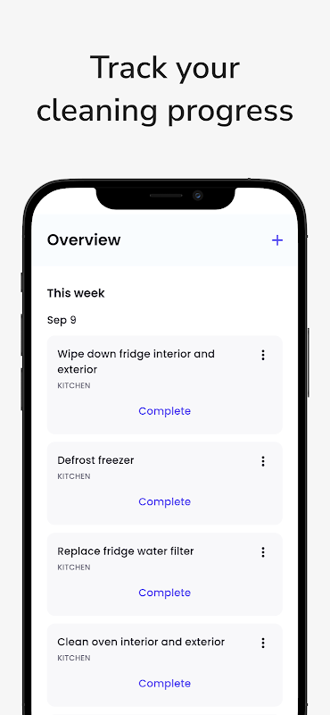 - Pelacakan Kemajuan: Tandai tugas sebagai selesai dan pantau kebiasaan pembersihan Anda.