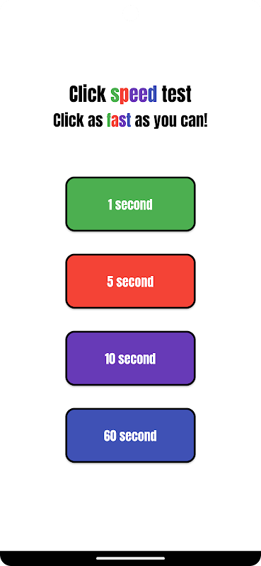 Aplikasi uji kecepatan klik untuk Android adalah aplikasi seluler yang dapat dipasang di perangkat Android, memungkinkan pengguna untuk mengukur kecepatan mengklik/mengetuk layar perangkat seluler mereka. Aplikasi ini menyediakan pengatur waktu dan area target yang perlu diklik/diketuk berulang kali oleh pengguna secepat mungkin, dengan hasil yang ditampilkan sebagai jumlah klik/ketukan per detik. Aplikasi ini biasanya digunakan untuk hiburan dan untuk menguji refleks dan ketangkasan pada perangkat seluler.