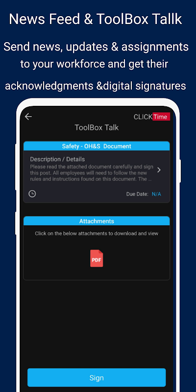 • Dokumen Situs: Lihat dokumen & lampiran situs penting yang dibagikan langsung dari aplikasi ClickTime.
