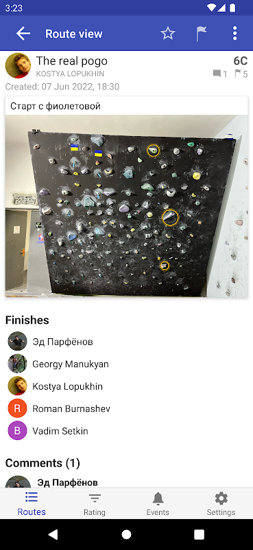 Anda dapat membuat dan melihat rute, menandai selesai, berpartisipasi dalam peringkat dinding panjat Anda.