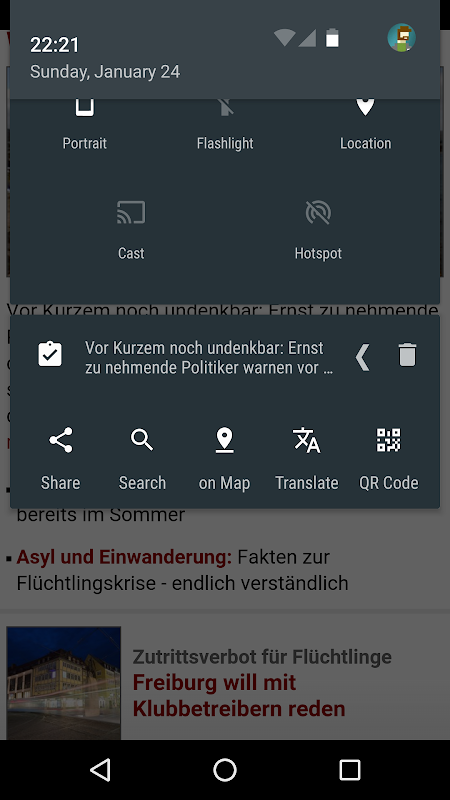 Tindakan Clipboard membuat tindakan berdasarkan teks yang Anda salin menunjukkannya di bilah status sebagai pemberitahuan atau dalam daftar yang bagus di App, tempat Anda dapat mengelola klip Anda.