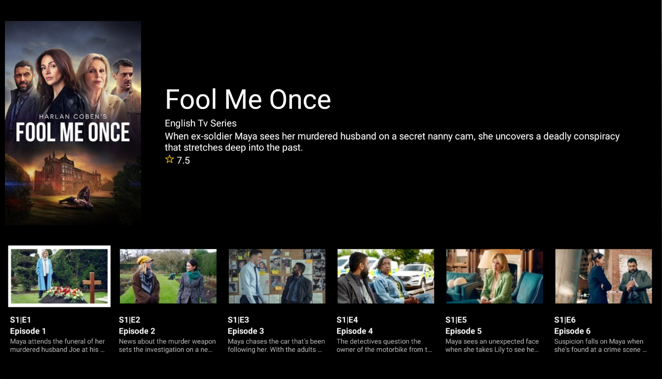Antarmuka yang Ramah Pengguna: Aplikasi kami menampilkan antarmuka yang bersih dan intuitif, membuatnya mudah dinavigasi dan menemukan konten baru. Temukan film dan serial dengan cepat, buat daftar putar, dan sesuaikan pengalaman menonton Anda dengan mudah.