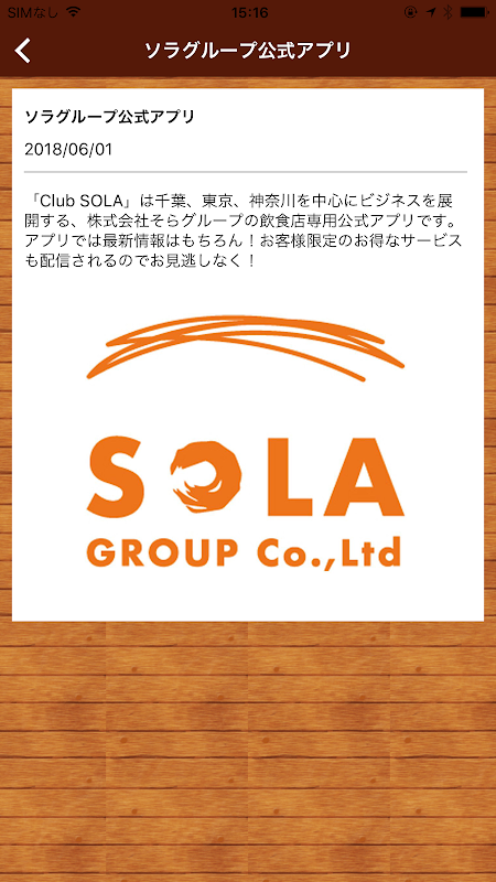 "Club SOLA" adalah aplikasi resmi yang didedikasikan untuk restoran di Sora Group, yang mengembangkan bisnis terutama di Chiba, Tokyo, Kanagawa.