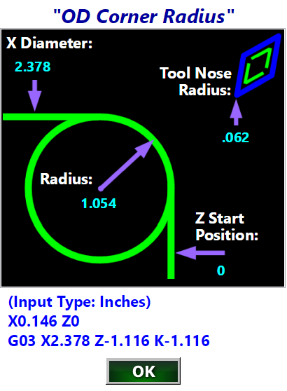 Pemrograman sudut bubut cnc dan radius fillet. Kalkulator Radius ID OD CNC
