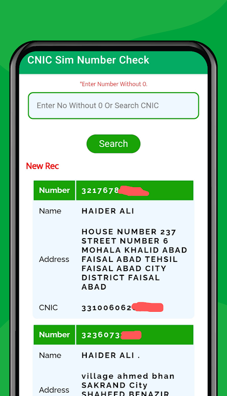 You can also use CNIC sim number check app to find another person's details.