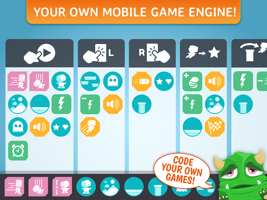 Coda Game adalah permainan yang dibuat dari keinginan anak-anak untuk mengubah hal-hal di aplikasi dan permainan favorit mereka. Kami memutuskan untuk membiarkan mereka menjadi kreator sendiri dan memiliki permainan mereka sendiri yang dapat mereka buat dengan blok kode visual. Penggunaan teks yang terbatas memungkinkan Anda untuk langsung mulai berkreasi. Anda akan mempelajari tentang perintah dan mekanisme permainan seperti gravitasi, menambahkan musuh, kecepatan, sistem poin, dan banyak lagi. Bergantung pada bagaimana Anda ingin perintah tersebut bekerja dalam permainan, Anda dapat dengan mudah menyeret dan melepaskannya ke pemicu seperti "saat memulai", "saat melewati rintangan", "saat menabrak musuh", dll. Hanya dalam beberapa langkah mudah - Anda akan memiliki permainan unik yang dapat Anda bagikan dengan keluarga, teman, dan di kelas.