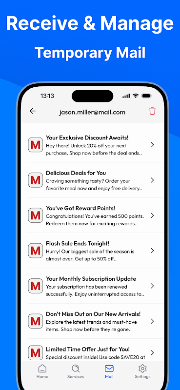 - Buat alamat email baru secara instan.