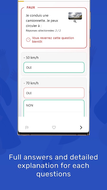 Avec Code de la Route memberi Anda bantuan yang Anda butuhkan dalam mempelajari aturan jalan dengan menawarkan akses gratis dan tidak terbatas ke rangkaian pelatihan (ujian dan tema), ke kursus kode jalan, dan ke rambu lalu lintas. Jangan menunggu lebih lama lagi, mulailah merevisi kode jalan raya!