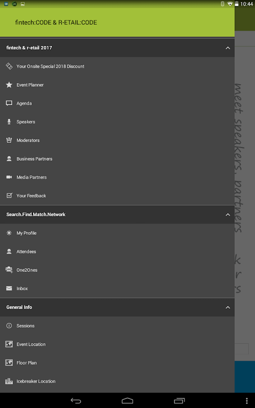 This is the official app for we.CONECTS annual fin:Code &R-ETAIL:CODE conference taking place March 14th - 16th, 2018 in London, UK.