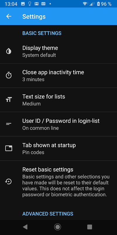 Anda masuk menggunakan kata sandi, tetapi Anda juga dapat mengaktifkan otentikasi biometrik (misalnya sidik jari) di Pengaturan.