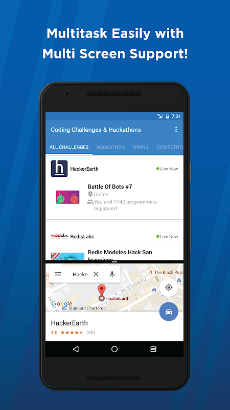 HackerEarth brings to you the best app to register for programming challenges & contests, hackathons and developer jobs. Highly recommended for all coders, programmers and hackers around the world, who are enthusiastic about competitive programming.