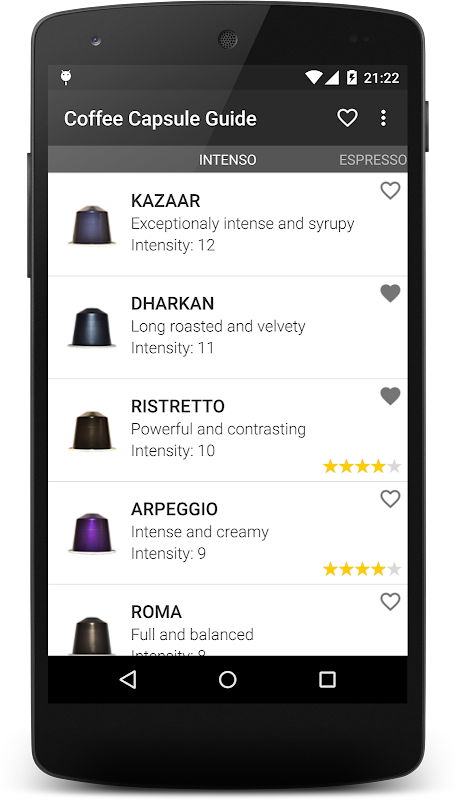 Coffee Capsule Guide helps you choose your next cup of coffee. It provides you an easy way of getting overview information about all different capsule types.